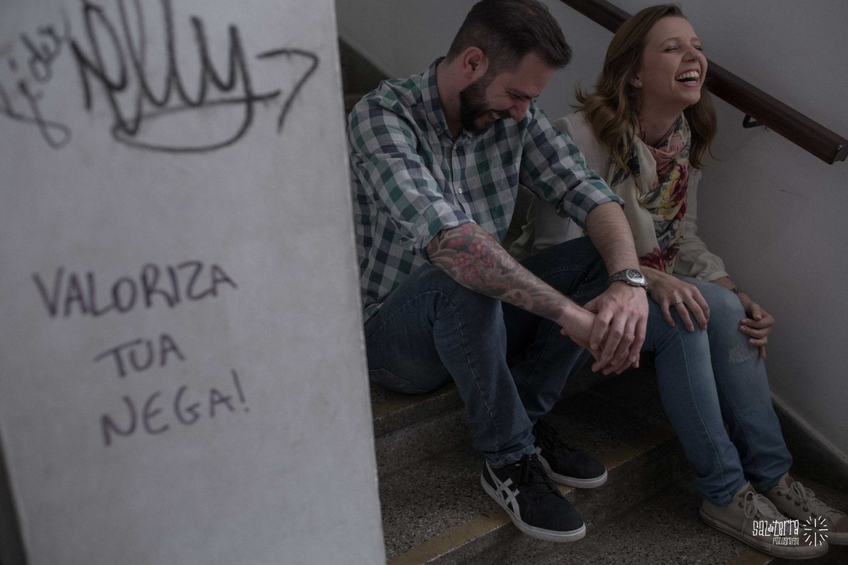 Marcamos o ensaio para um sábado, dia que a Cris e o Gustavo podiam, e eles queriam muito que fosse na casa de cultura Mario Quintana, um lugar que tem tudo a ver com eles. A casa autorizou fazermos as fotos, beleza...